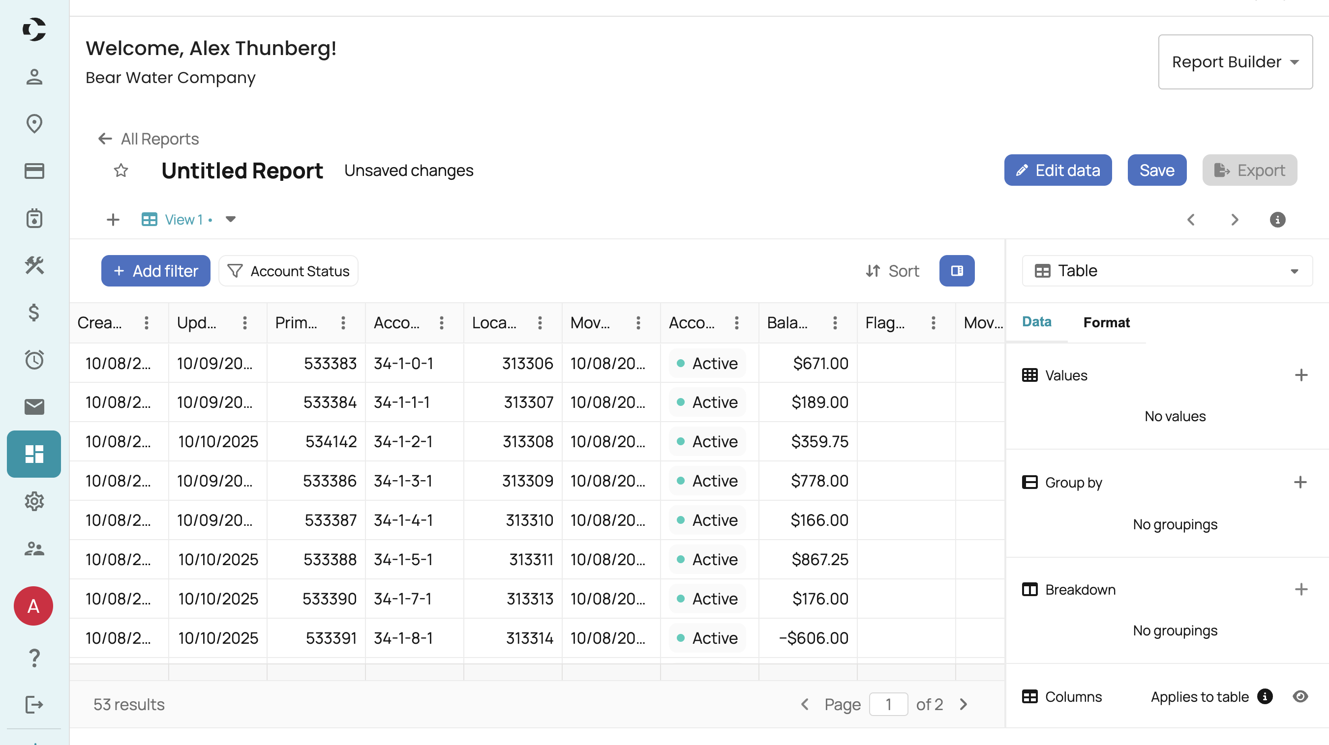 - Apply Filters – Narrow results to specific time periods, service areas, or account types.