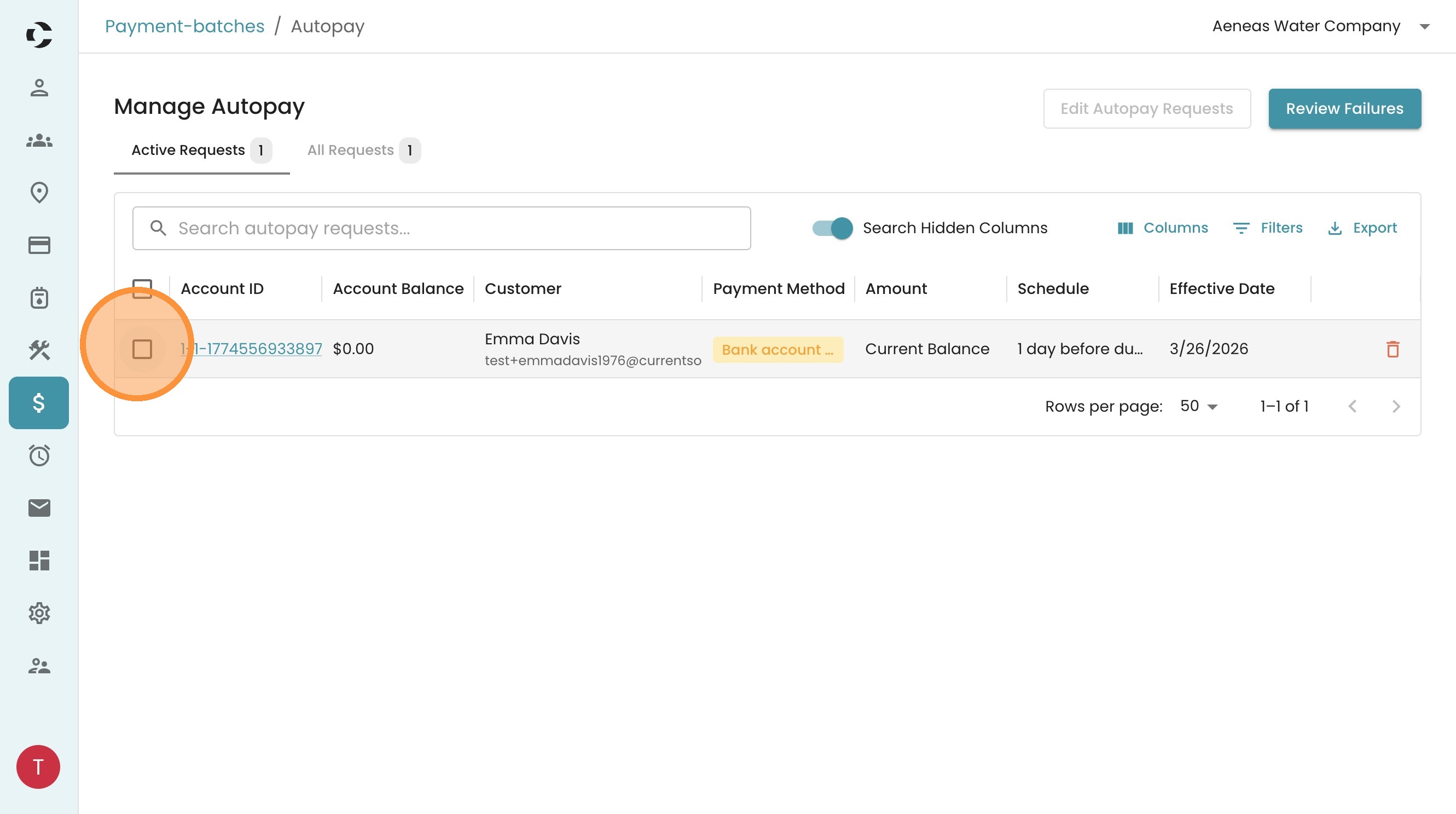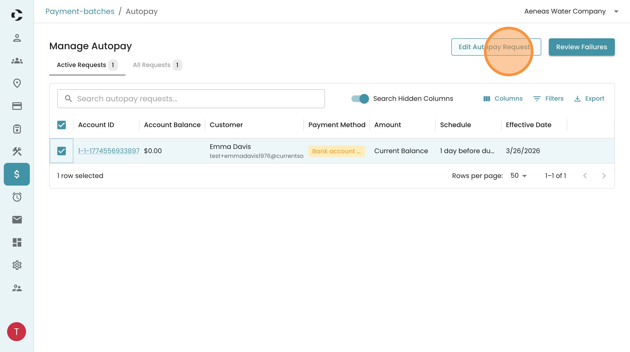 4. You can modify an autopayment by selecting the account with the checkbox on the left